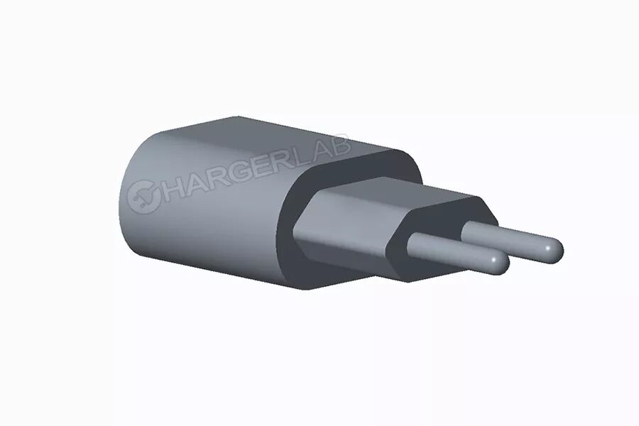 这是一款欧版的充电器,采用欧规标准的圆柱形插脚,机身呈扁平的椭圆形,整体造型比较圆润、纤薄、修长。
