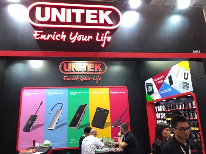 UCOUSO展台主打USB-C扩展坞,其中有款超大扩展坞相当显眼,第一眼看到真的被个头惊呆了。别看个头略蠢,用法很有意思:垫在笔记本底下用,既起到隐藏的效果,又能充当支架的作用,一举两得,毫无违和感。做这么大的好处就是能涵盖尽可能多的接口,几乎你能想象的所有接口一个都没落下。做工相当精致,通过DC接口供电,支持USB PD输出供电、USB 3.0、4K视频输出。除了这款巨无霸扩展坞外,常规尺寸不同种类的扩展坞也是应有尽有,而且做工同样也相当不错。